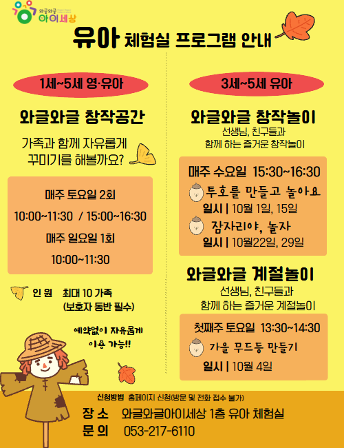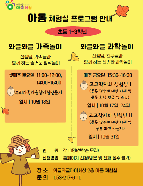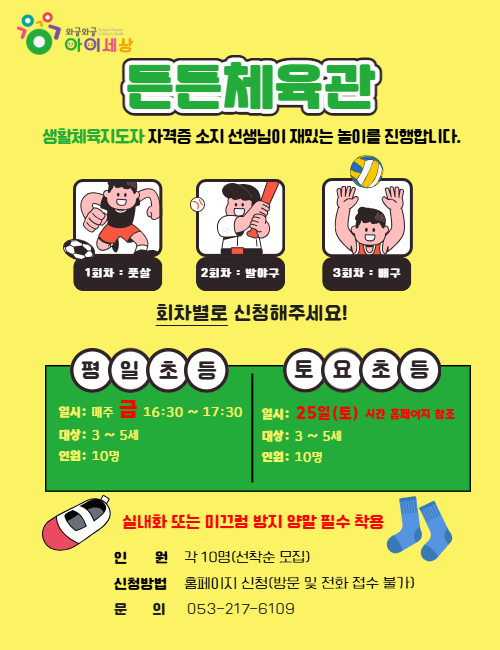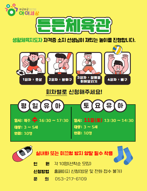문의: 체험실 053-217-6110, 체육관 053-217-6109