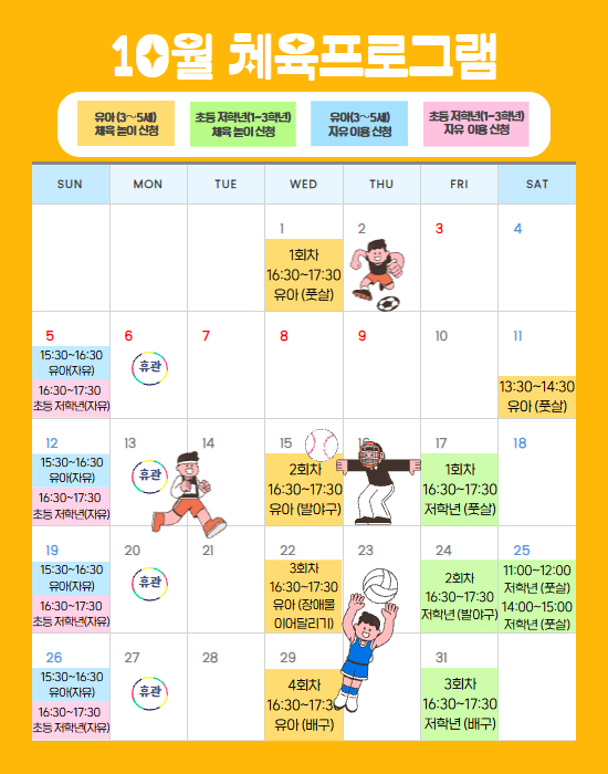 * 체육관 사용 시 이용자 및 보호자 모두 실내화 또는 미끄럼 방지 양말 필수입니다.