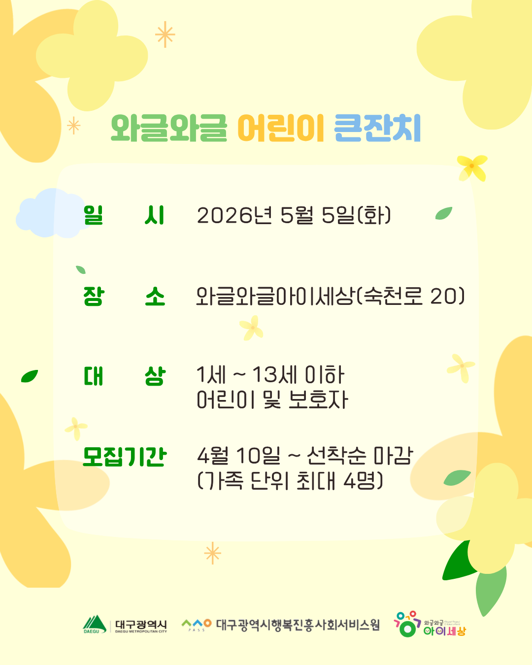 대상: 1세 ~ 13세 이하 어린이 및 보호자