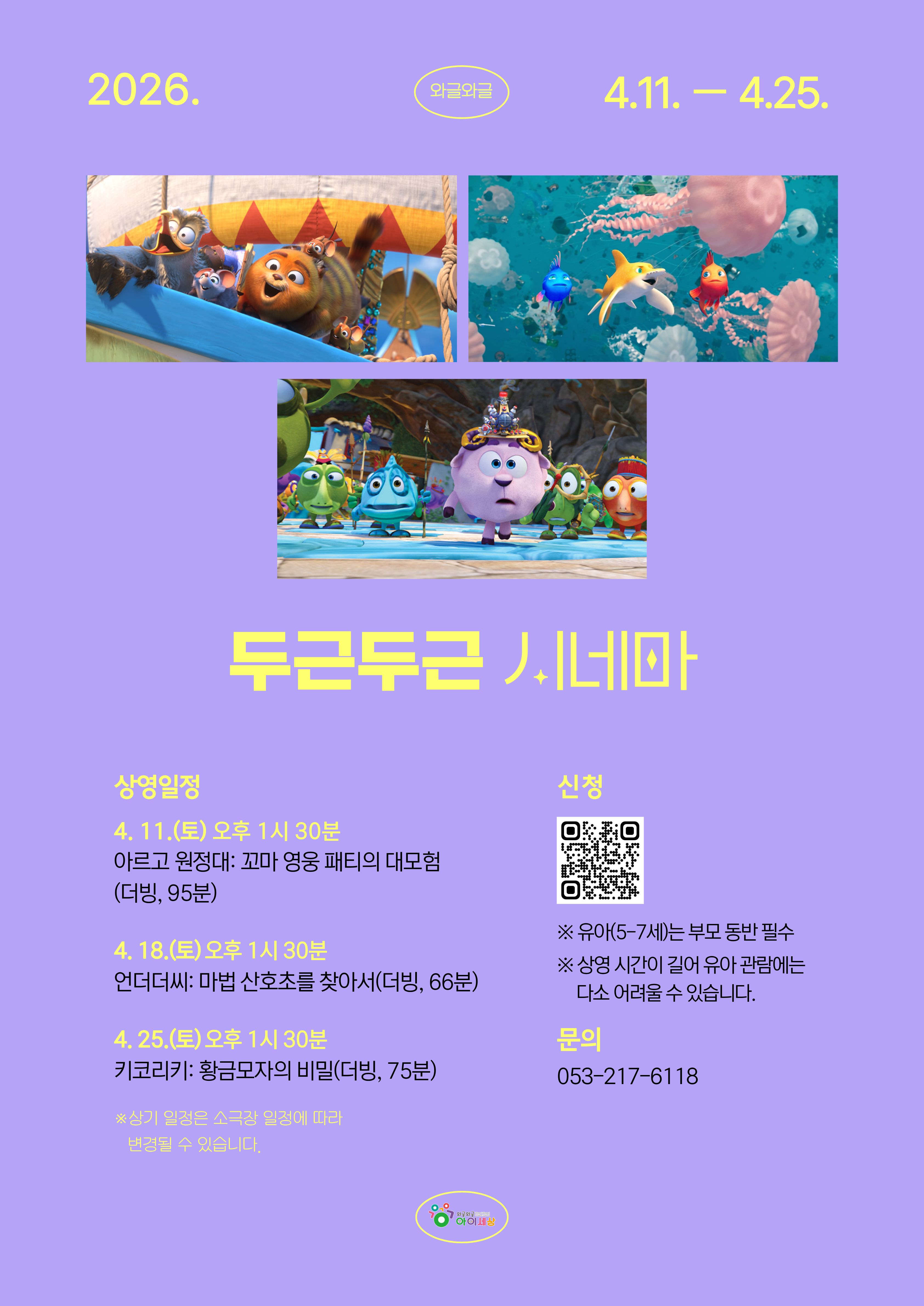 ※ 상영 시간이 길어 유아 관람에는 다소 어려울 수 있습니다.