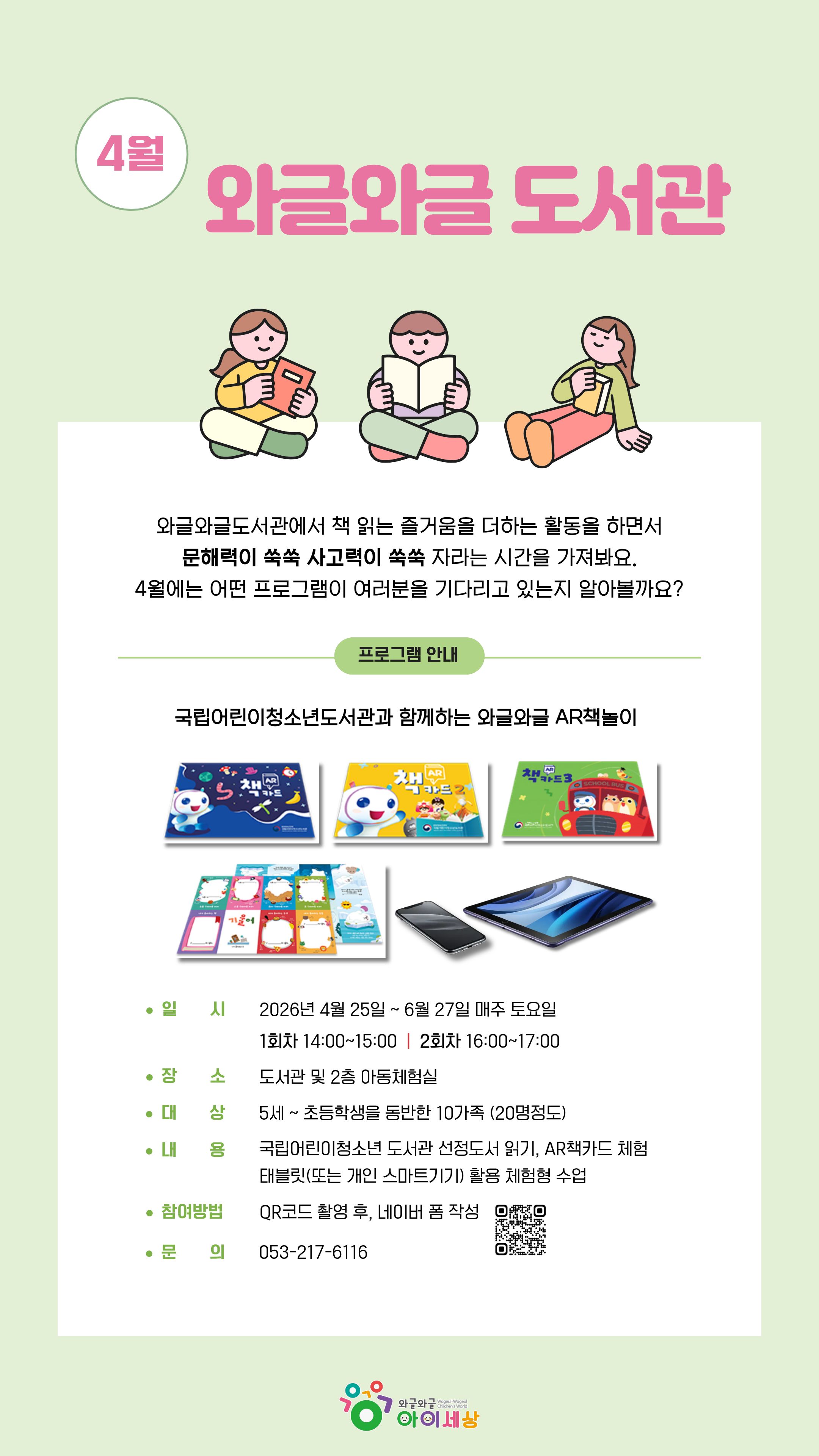 어린이들이 책 속 세상을 더욱 생생하게 체험할 수 있도록 증강현실(AR) 기술을 접목한 특별한 독서 프로그램을 준비했습니다.